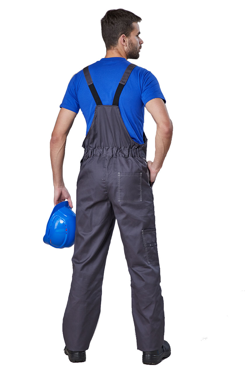 На правой задней половинке накладной карман и два кармана для инструментов в области бокового шва.
