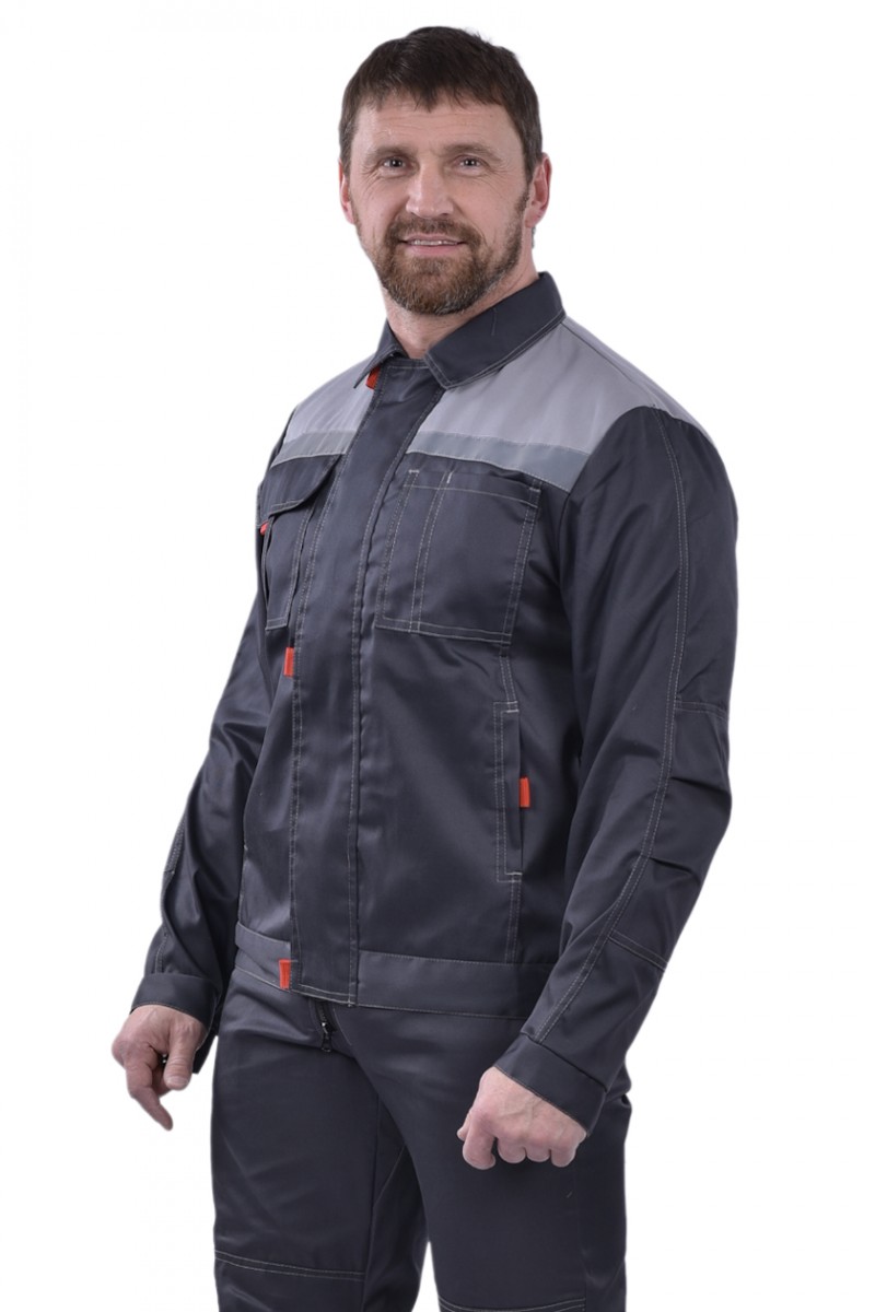 Два нагрудных накладных кармана, правый с вертикальной застроченной складкой, левый с отделением для ручки. Два нижних кармана расположены в рельефных швах.