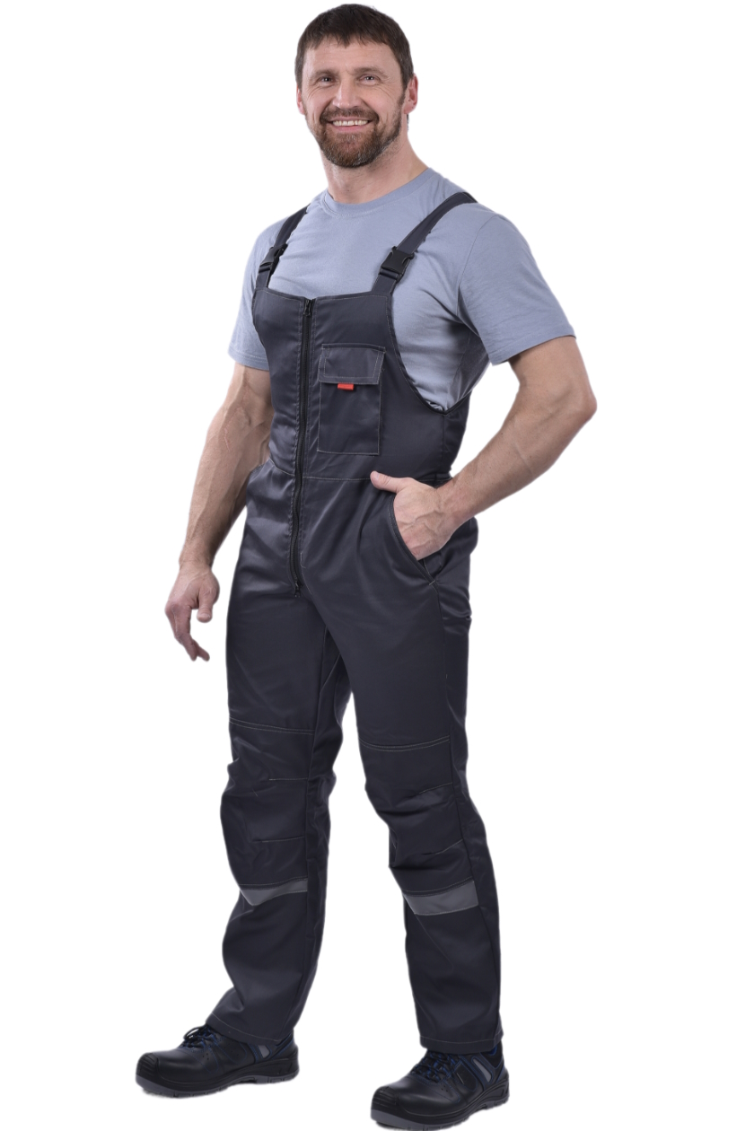 ➠ Полукомбинезон с притачным поясом по линии талии. Передние карманы с отрезным бочком, с фигурной линией входа. На правой задней половинке накладной карман.