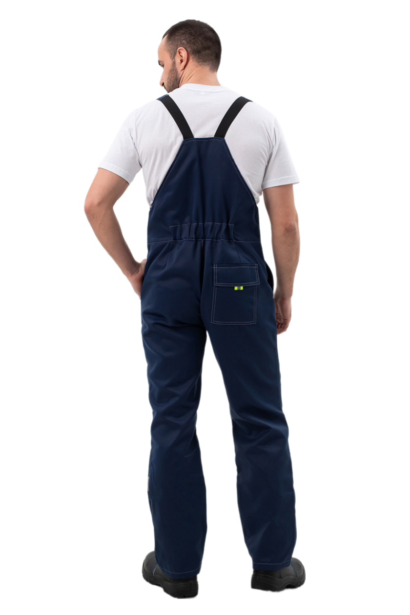 ➠ Полукомбинезон с притачным поясом по линии талии. Передние карманы с отрезным бочком, с фигурной линией входа. На правой задней половинке накладной карман.