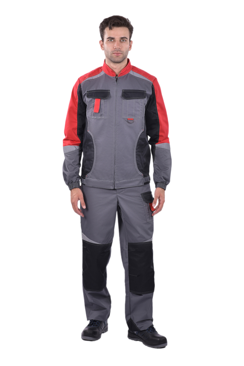 ➠ Куртка: силуэт прямой, пояс притачной, застежка на молнию, воротник стойка. Накладные карманы комбинированные с малыми накладными карманами с разделителями. Прорезные карманы на нижней части полочки. По шву притачивания кокетки вверху и по рукавам фигурные вставки СОП.
