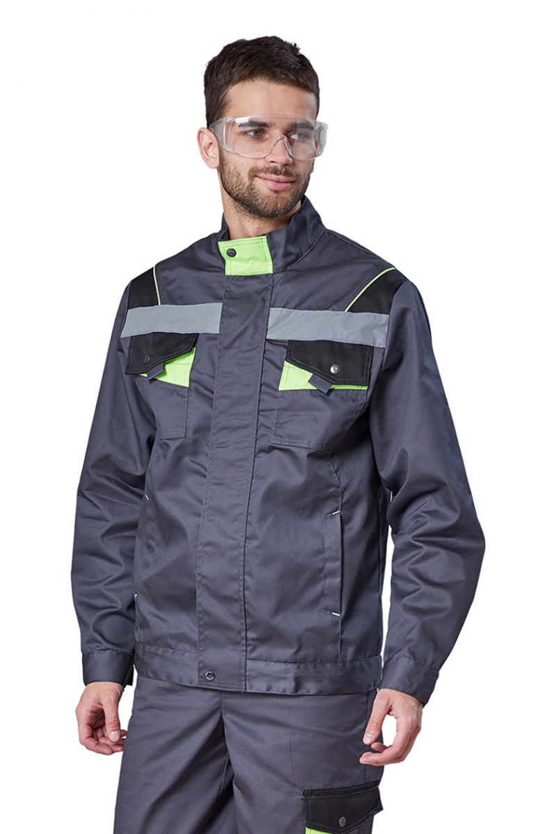 Куртка прямого силуэта, воротник стойка, застёжка на молнию с ветрозащитным клапаном, застёгивающимся на кнопки и липучку. Верхние накладные карманы с фигурным клапаном, нижние карманы в швах, низ куртки регулируется по ширине при помощи хлястиков и кнопок, манжеты на кнопках.