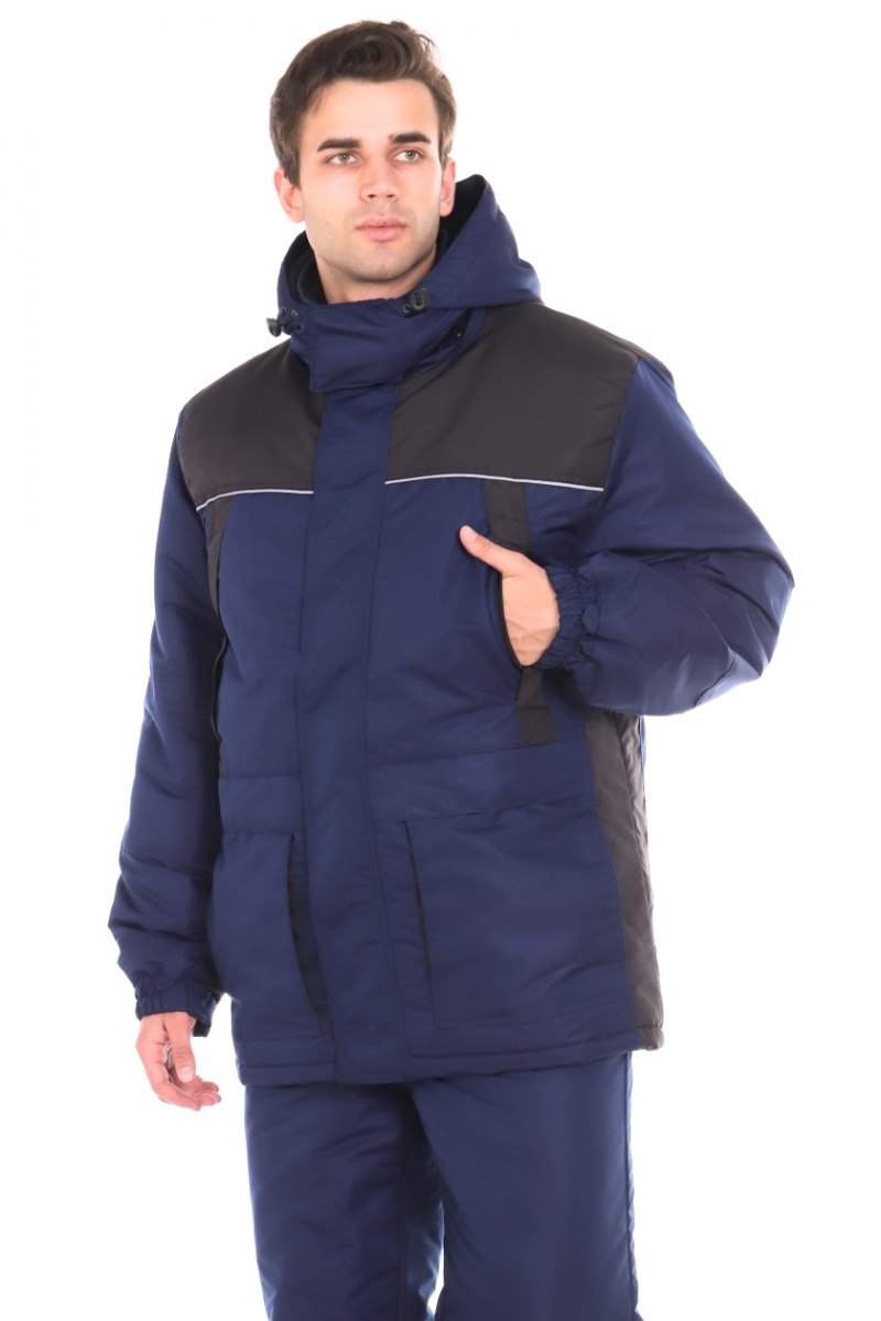 Два нагрудных кармана. Два нижних кармана в шве стачивания верхней и нижней деталей средней части полочки. Карман имеет два входа. Верхний застегивается на тесьму «молния». Рукава с трикотажными манжетами, с усилительными накладками. По линии талии и по низу куртки предусмотрена кулиса.