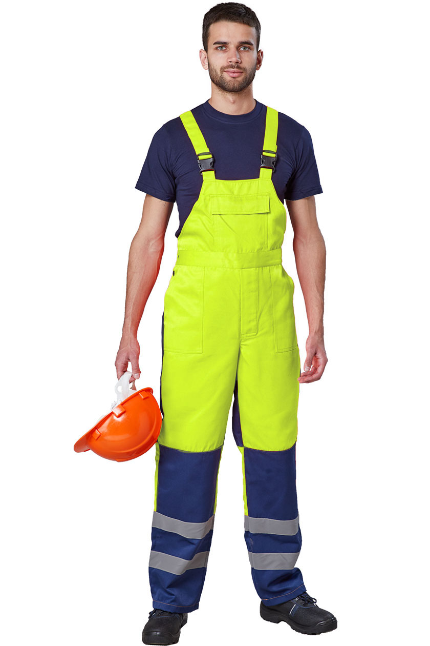 ➠ Полукомбинезон с притачной грудкой и спинкой, с застежкой гульфика на пуговицы, с застежкой в левом боковом шве на пуговицы. Два боковых накладных кармана. Наколенники. На правой задней половинке накладной кармана. На груде накладной карман с клапаном. Спинка стянута эластичной тесьмой. СОП 50 мм проходит вкруговую в два ряда по низу полукомбинезона.