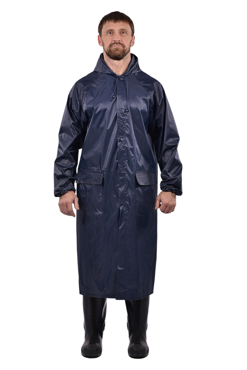 Плащ прямого силуэта, центральная застёжка на молнии, ветрозащитная планка на кнопках для дополнительной защиты от влаги.